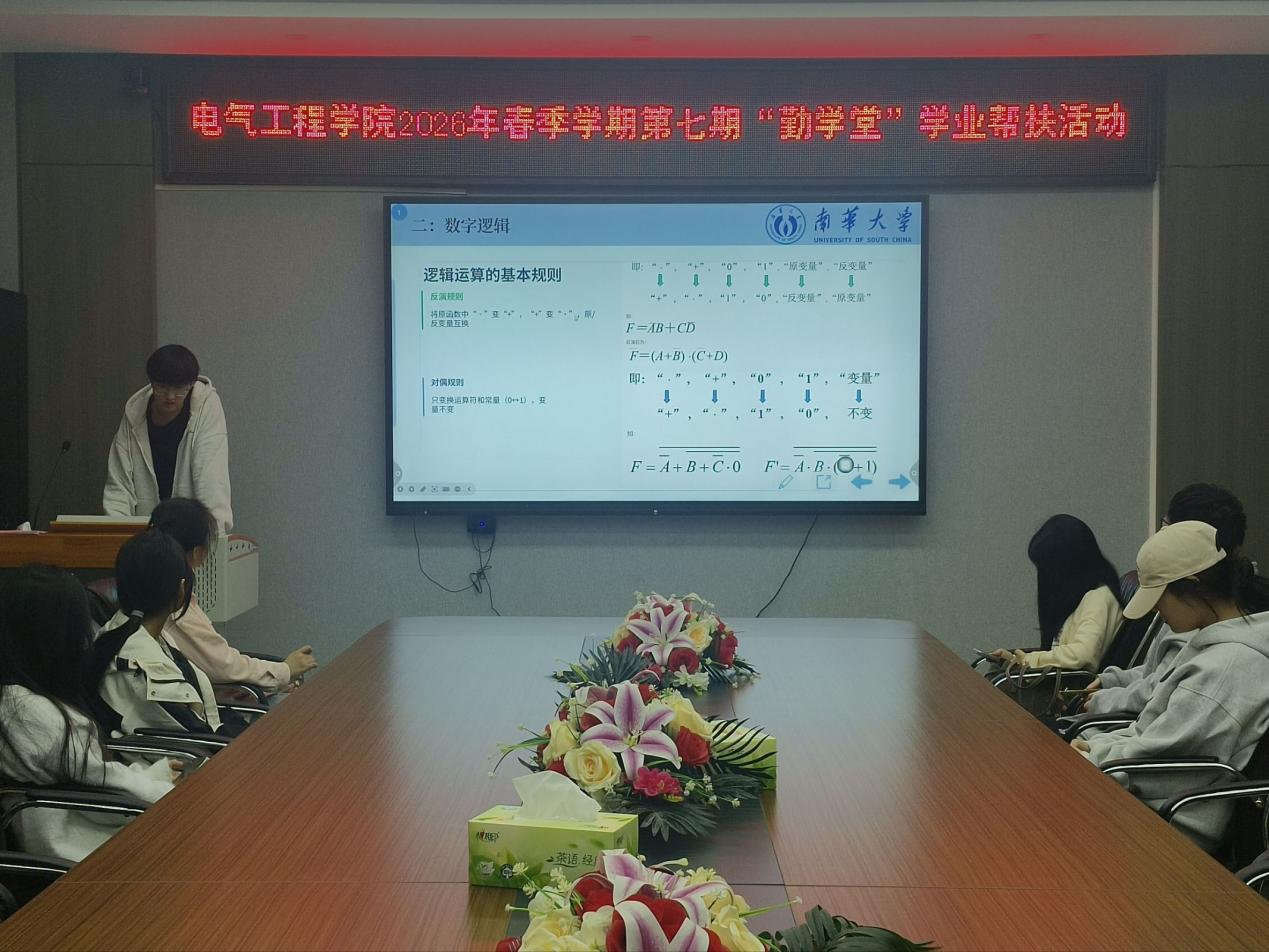 4月24日,球速体育于崇业楼B301室成功举办2026年春季学期第七期“勤学堂”学业帮扶活动。活动围绕“数字电子技术”专题展开,邀请国家励志奖学金获得者易大伟担任本期主讲。